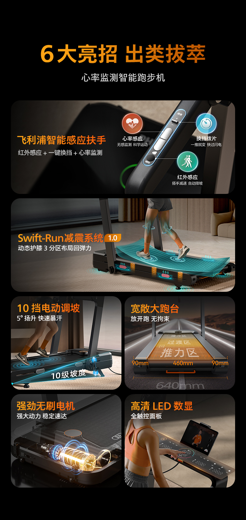 飞利浦智跃跑步机家用款小型智能室内折叠健身房专用器材2025新款