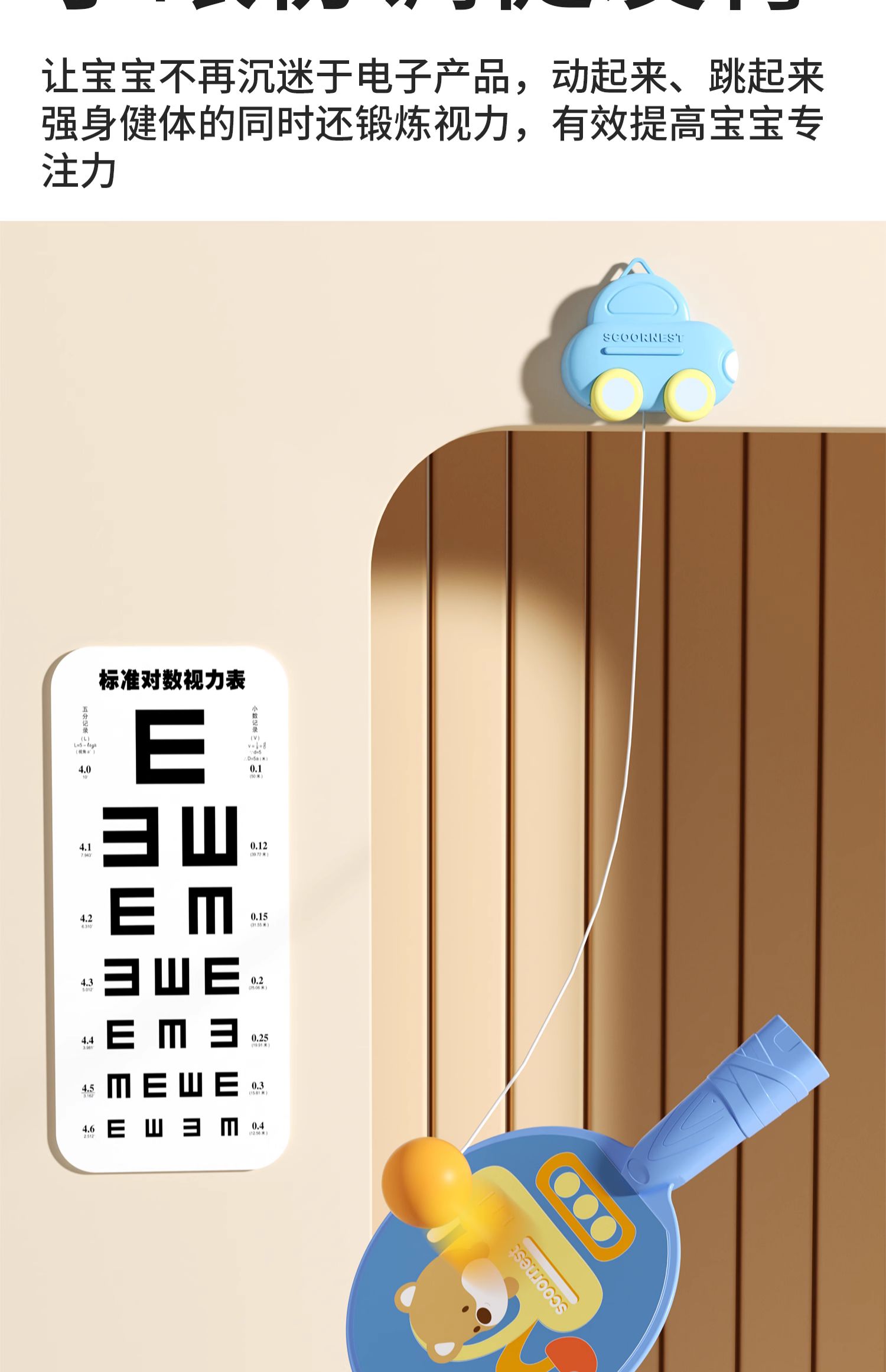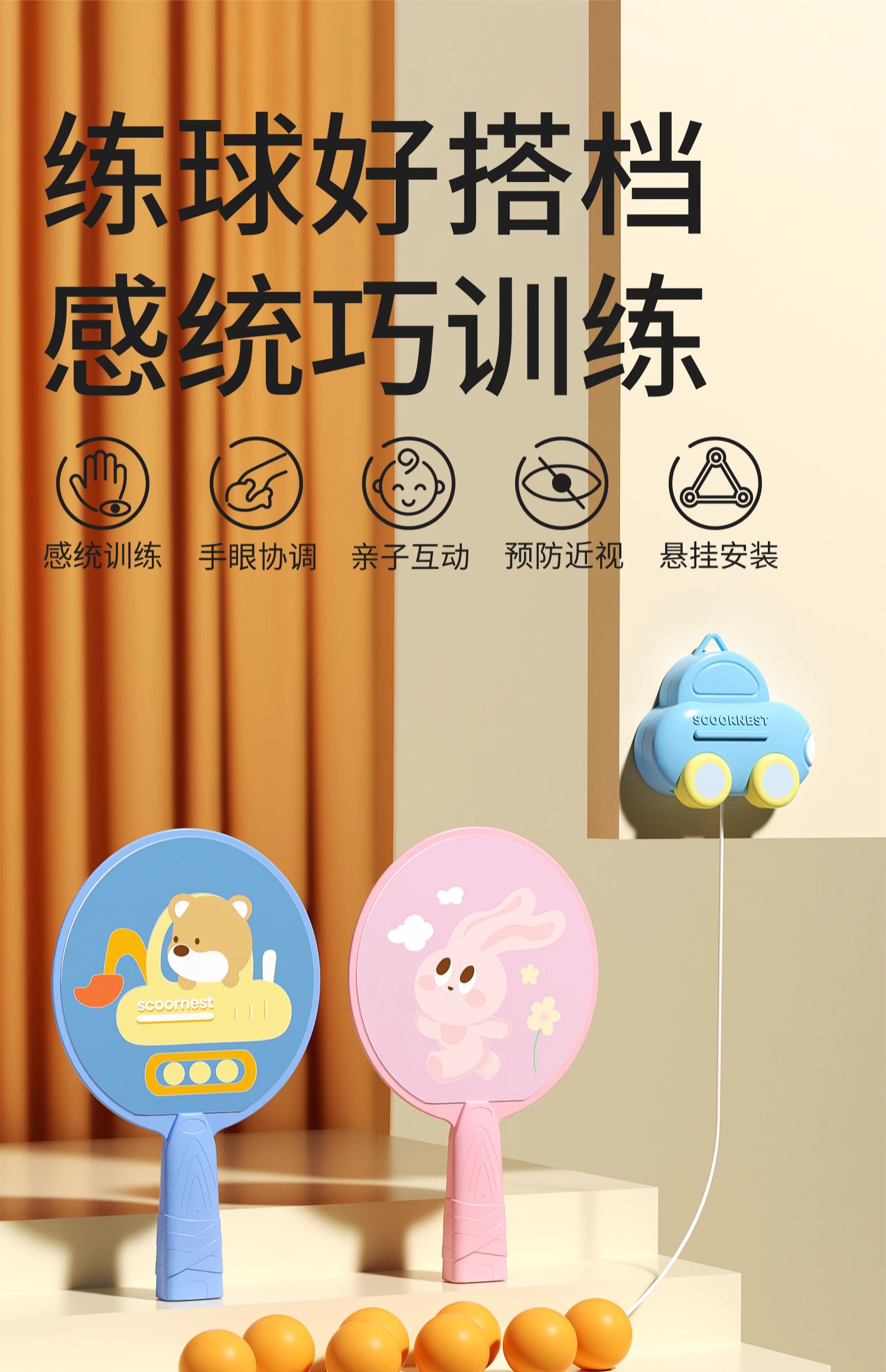 悬挂式乒乓球儿童训练器亲子互动室内手眼协调锻炼球拍类益智玩具