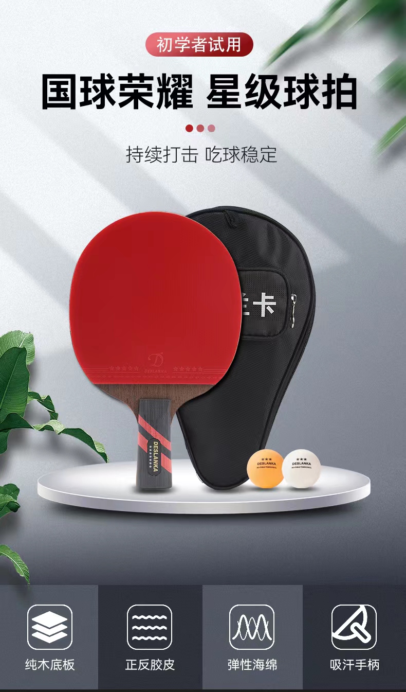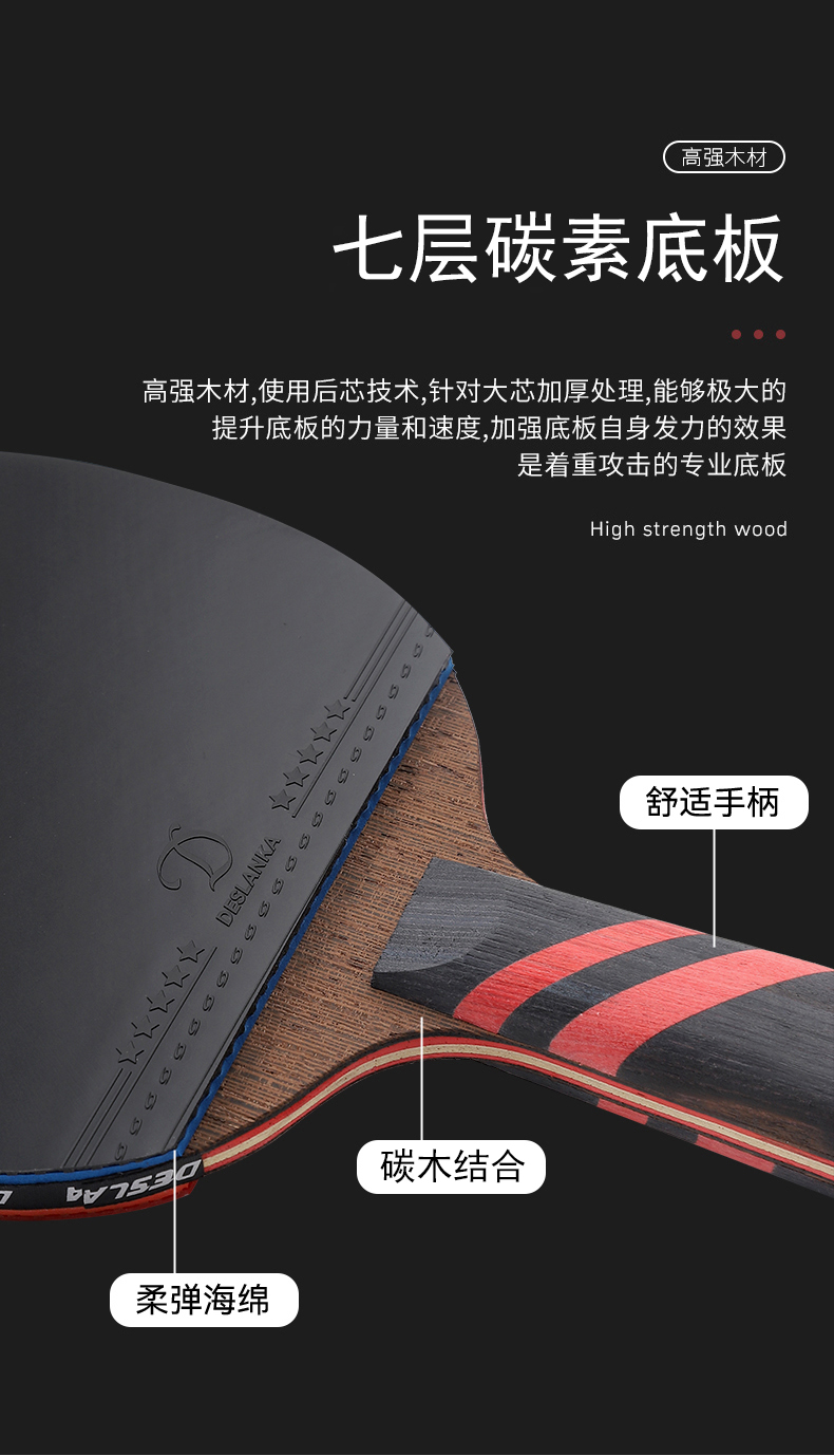 帝斯蓝卡乒乓球拍专业级单拍九星正品旗舰店直拍横拍碳素球板高弹