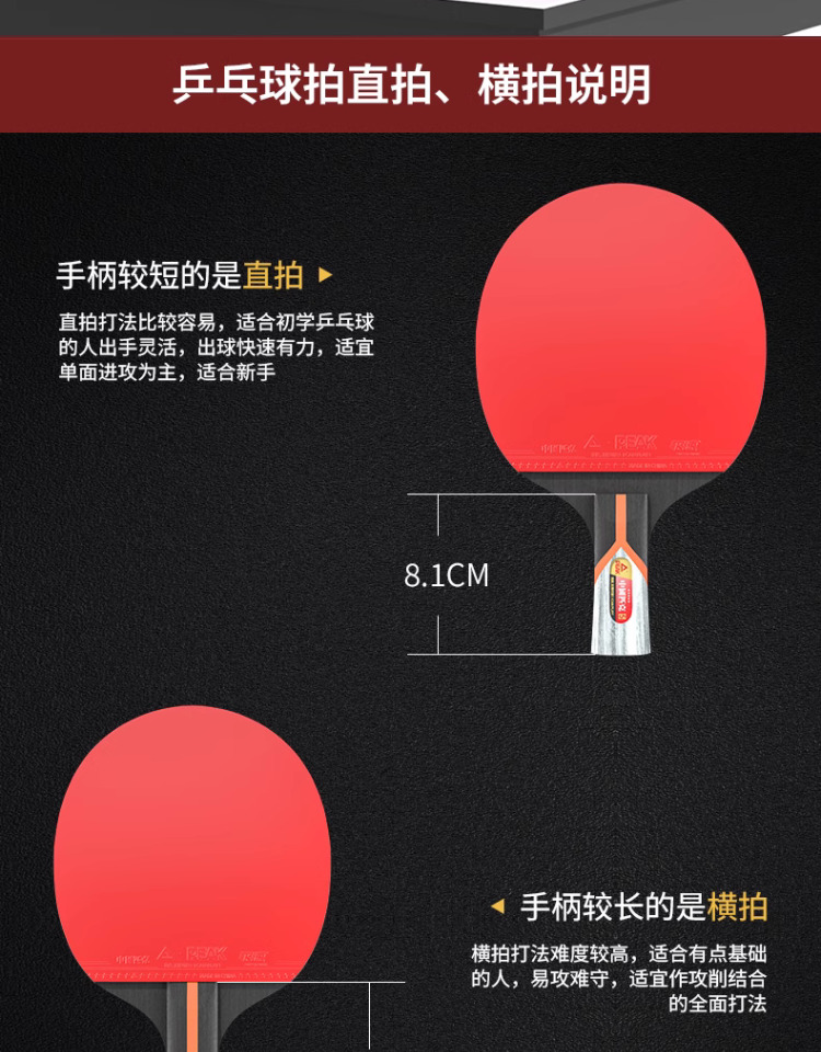 • 【二星级】短柄直拍两支,送3个三星球+护边条+拍包