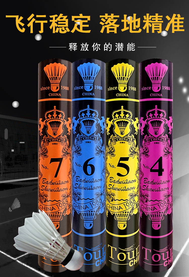 正品亚洲波狮龙羽毛球7号4/5号/6号耐打稳定训练专业比赛用12只装