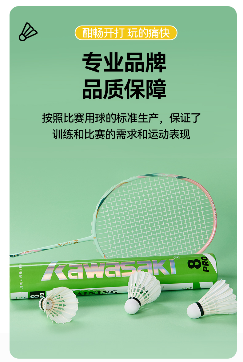 kawasaki川崎羽毛球 耐打训练级6只装 训练用球耐打王 室内外专业