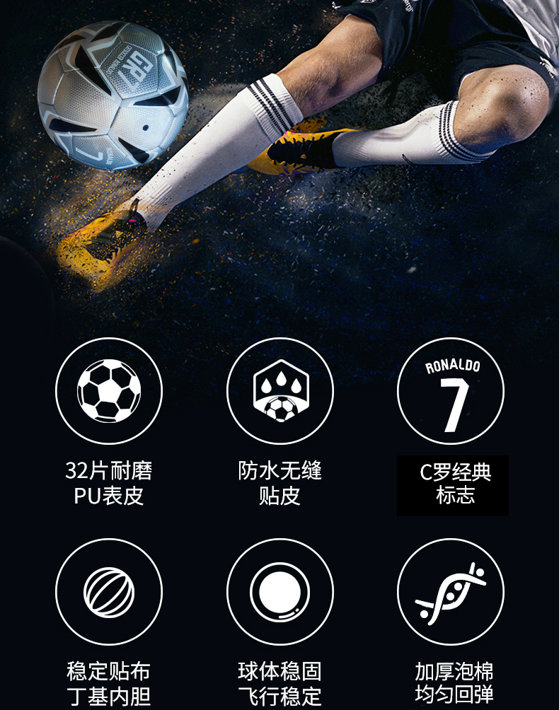 • C罗镜面银黑款 比赛训练足球