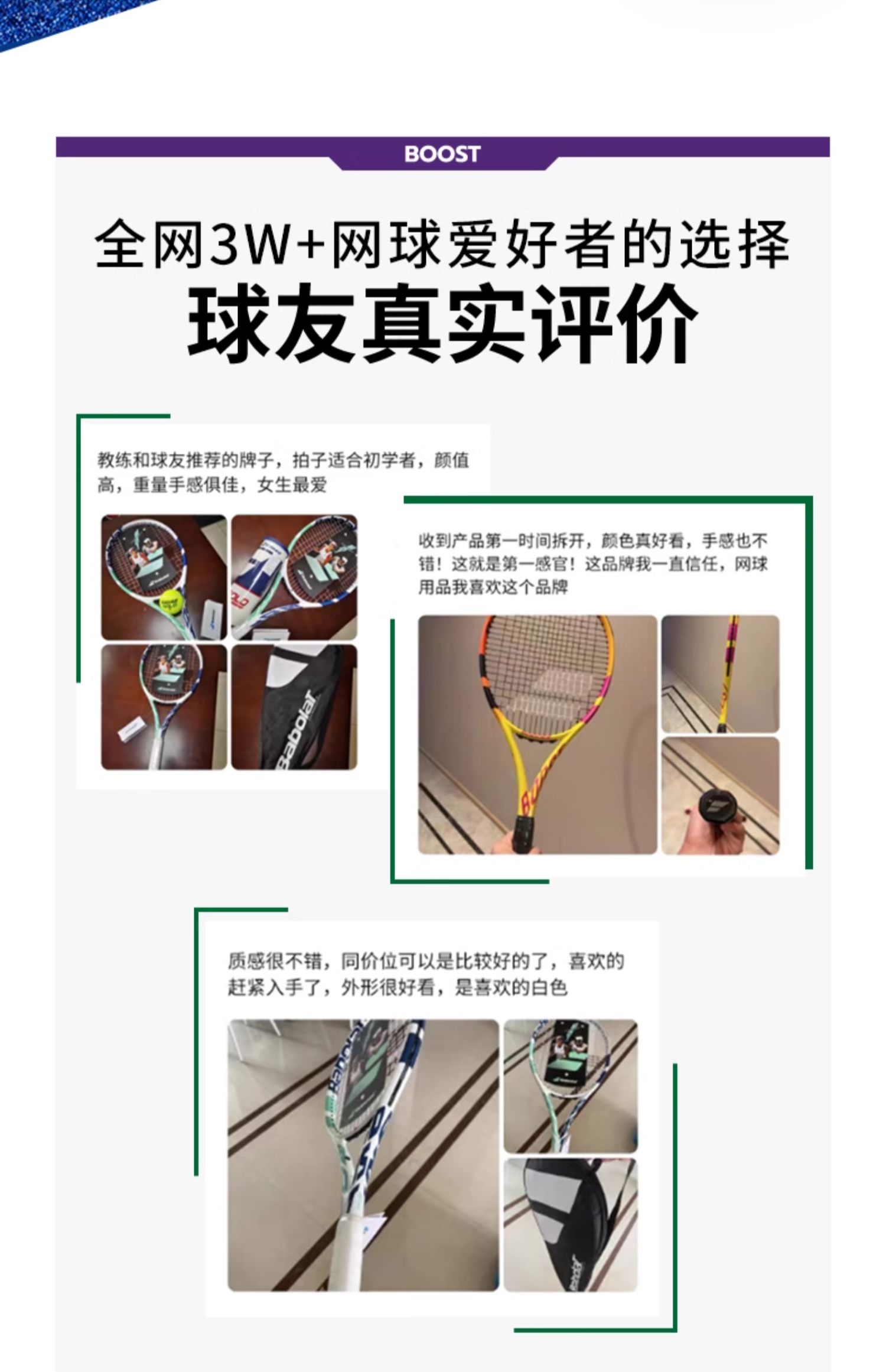 Babolat百保力官方boost男女全碳素轻量学生百宝力初学进阶网球拍