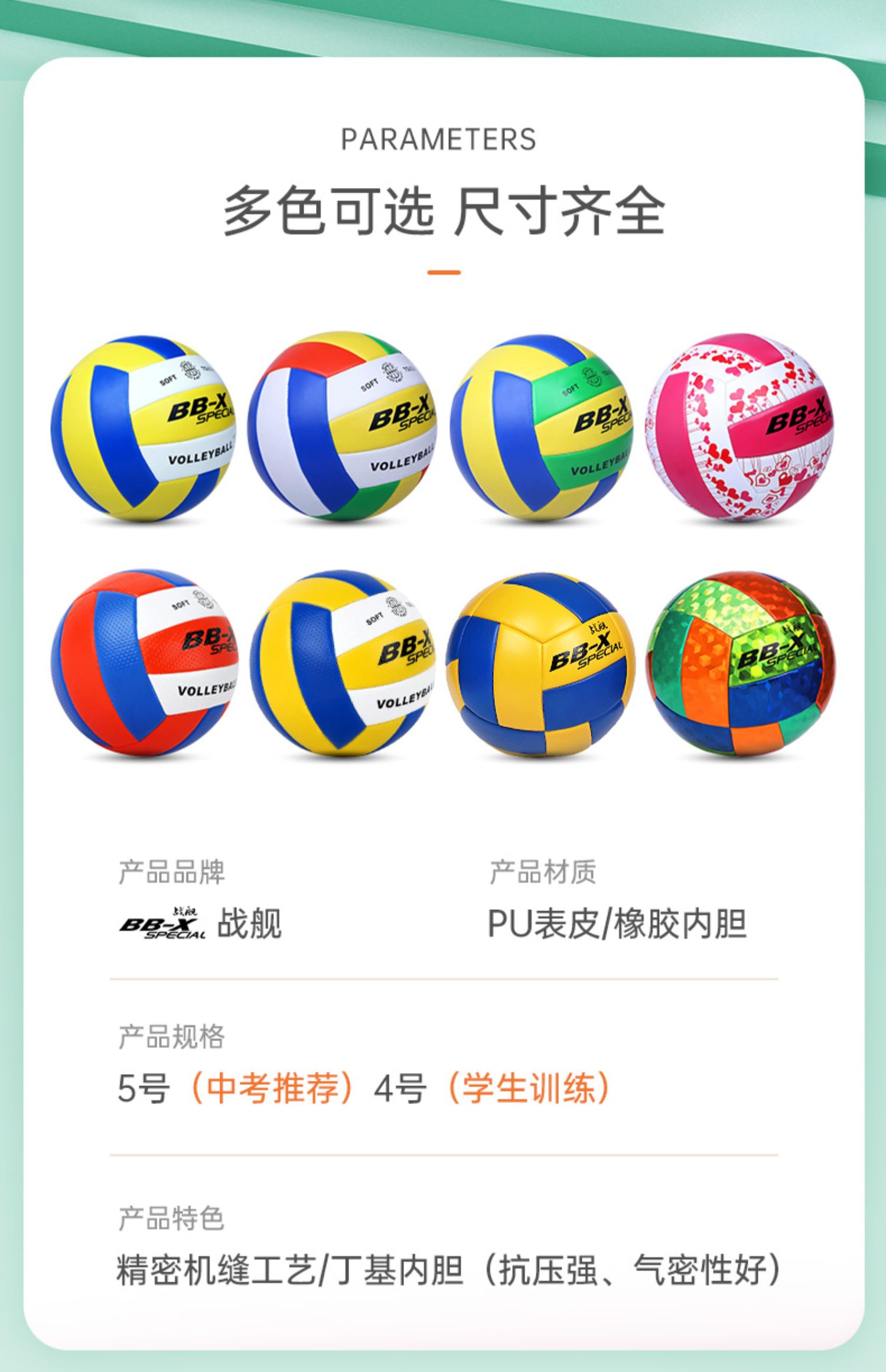 战舰排球中考5号学生专用软式初中生小学生4号儿童男女比赛气排球