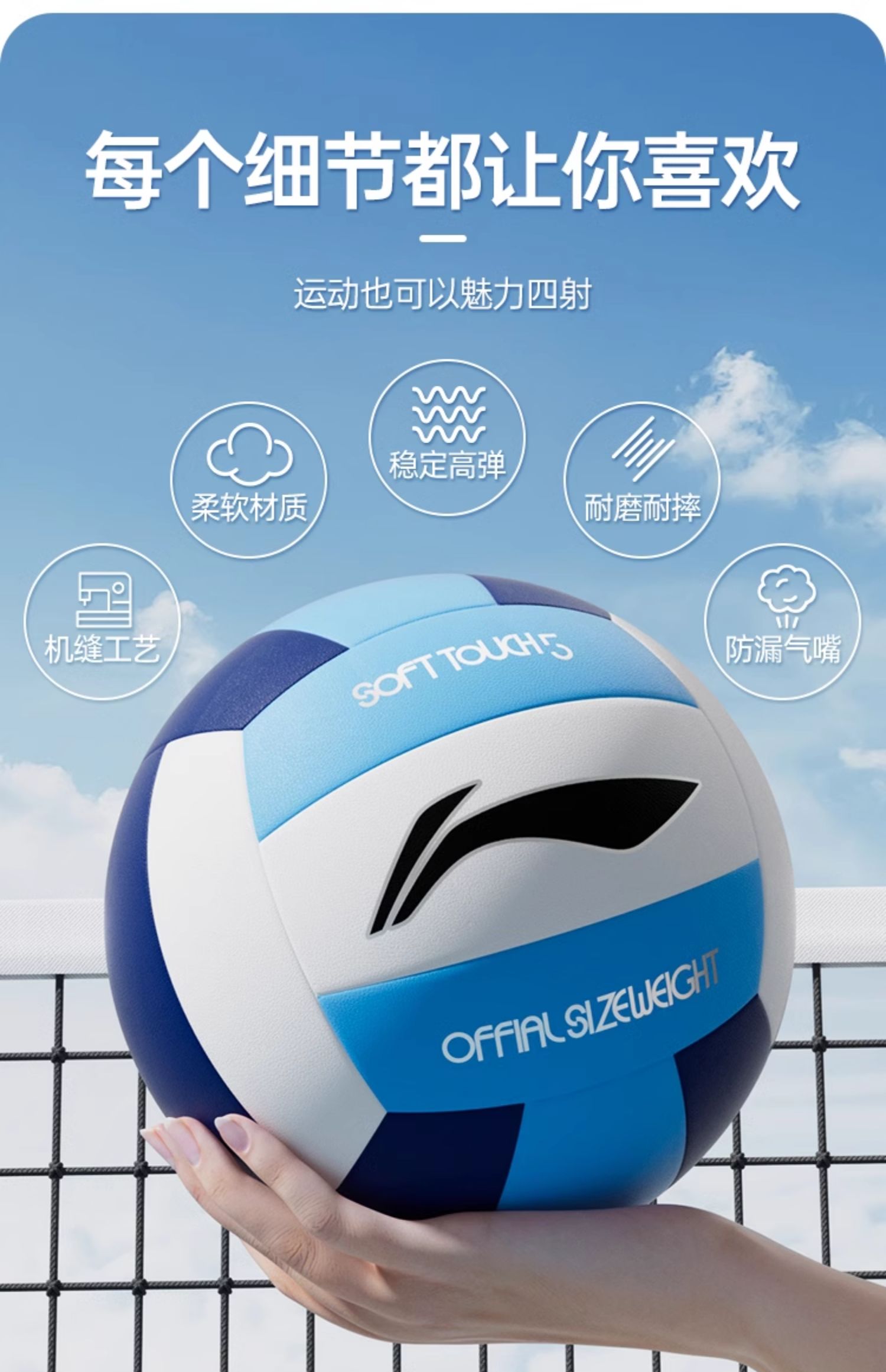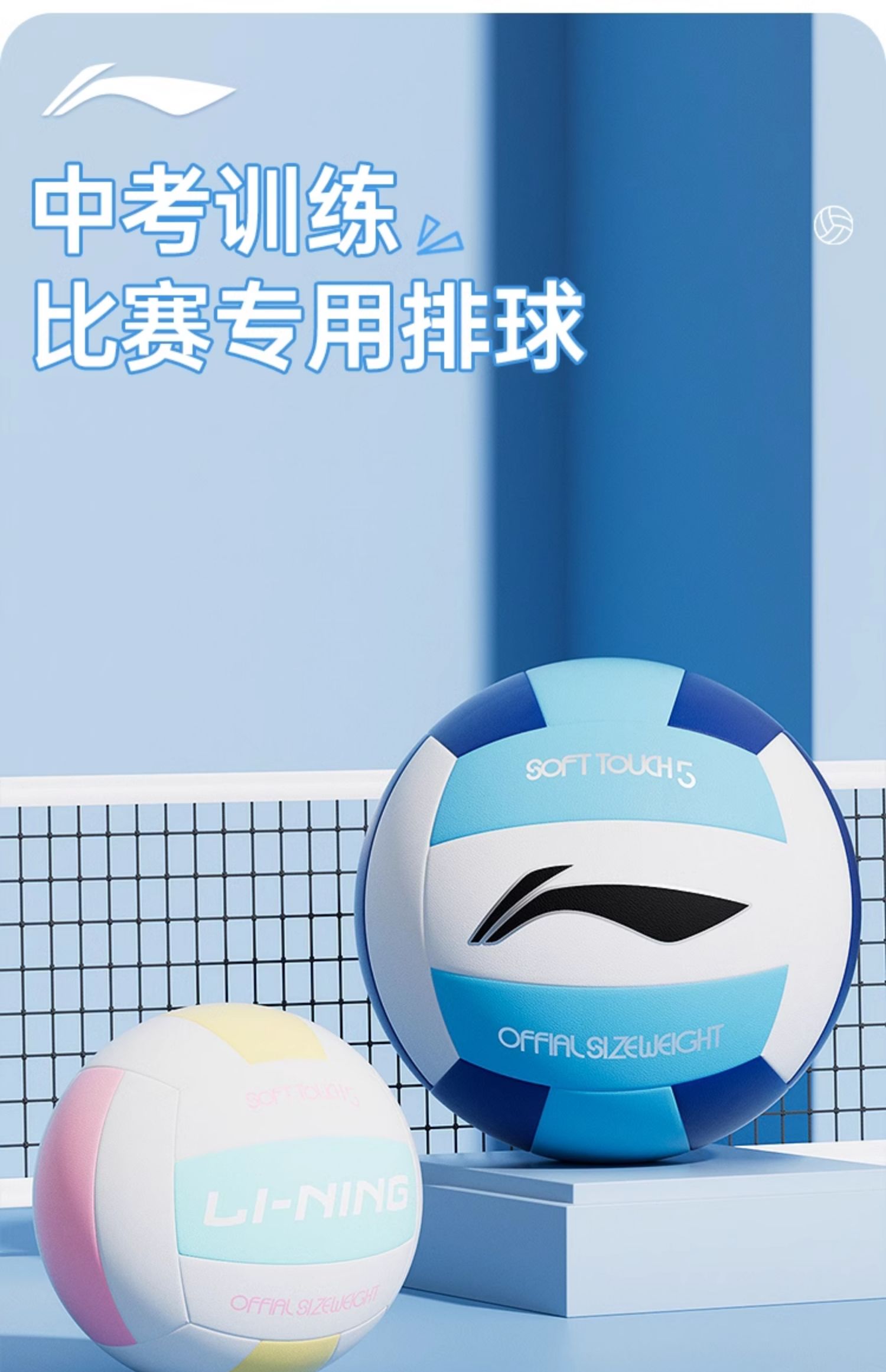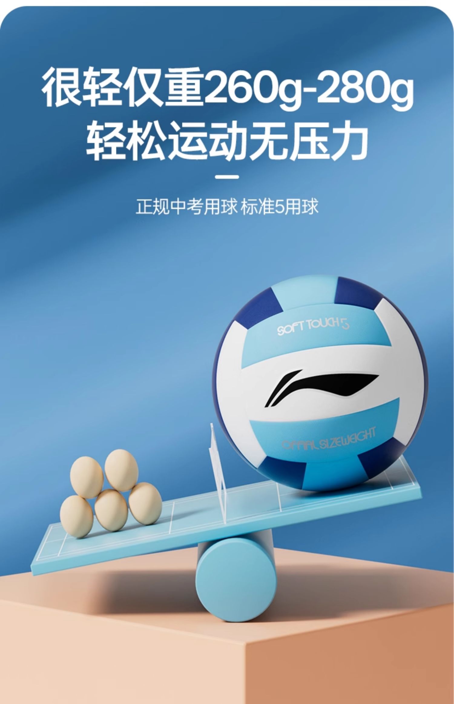 李宁中考专用排球5号初中生中学生女生体育训练考试硬标准气排球