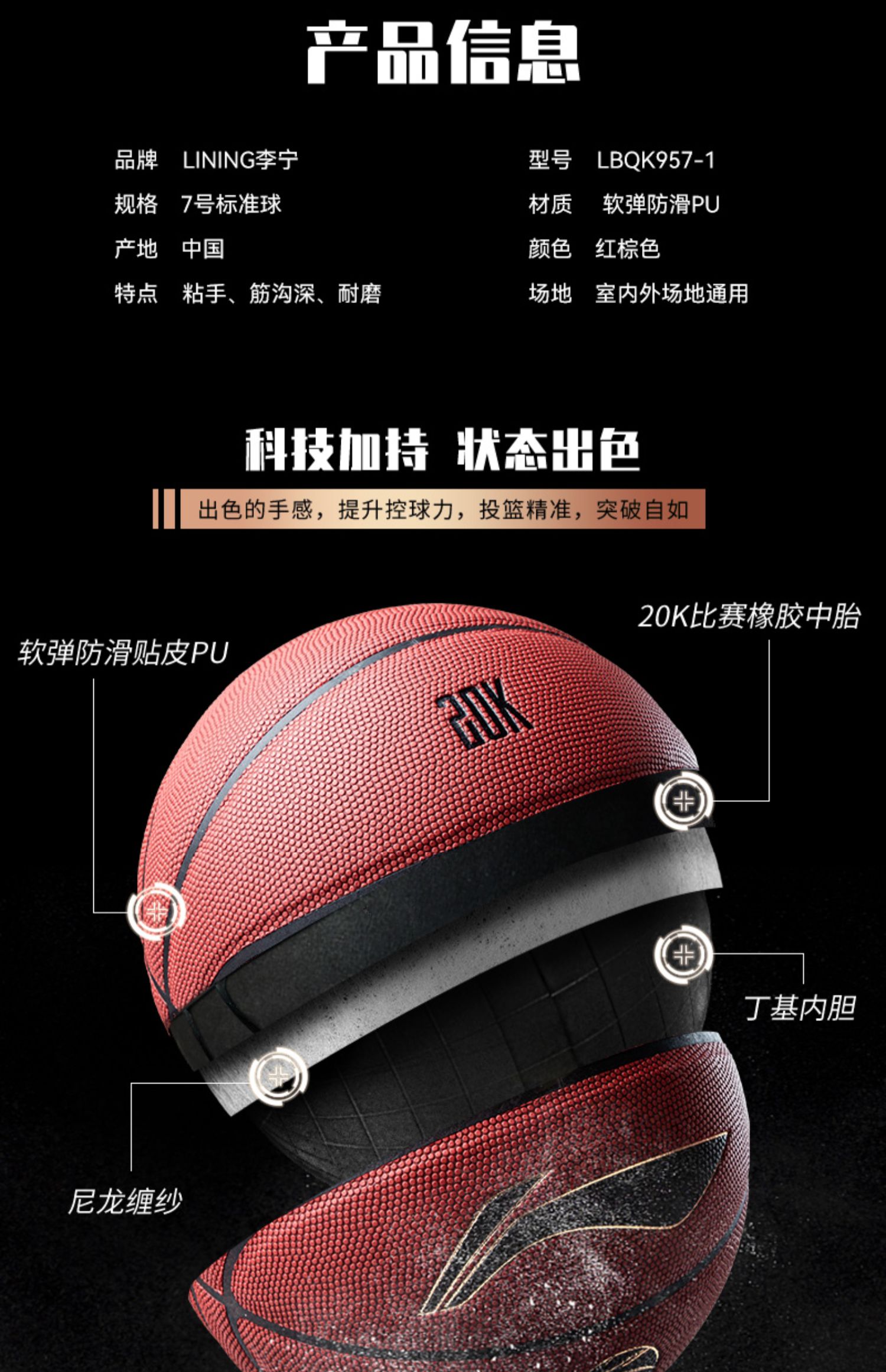 李宁篮球7号男CBA专用室内外耐磨手感之王专业20K比赛蓝球957礼物